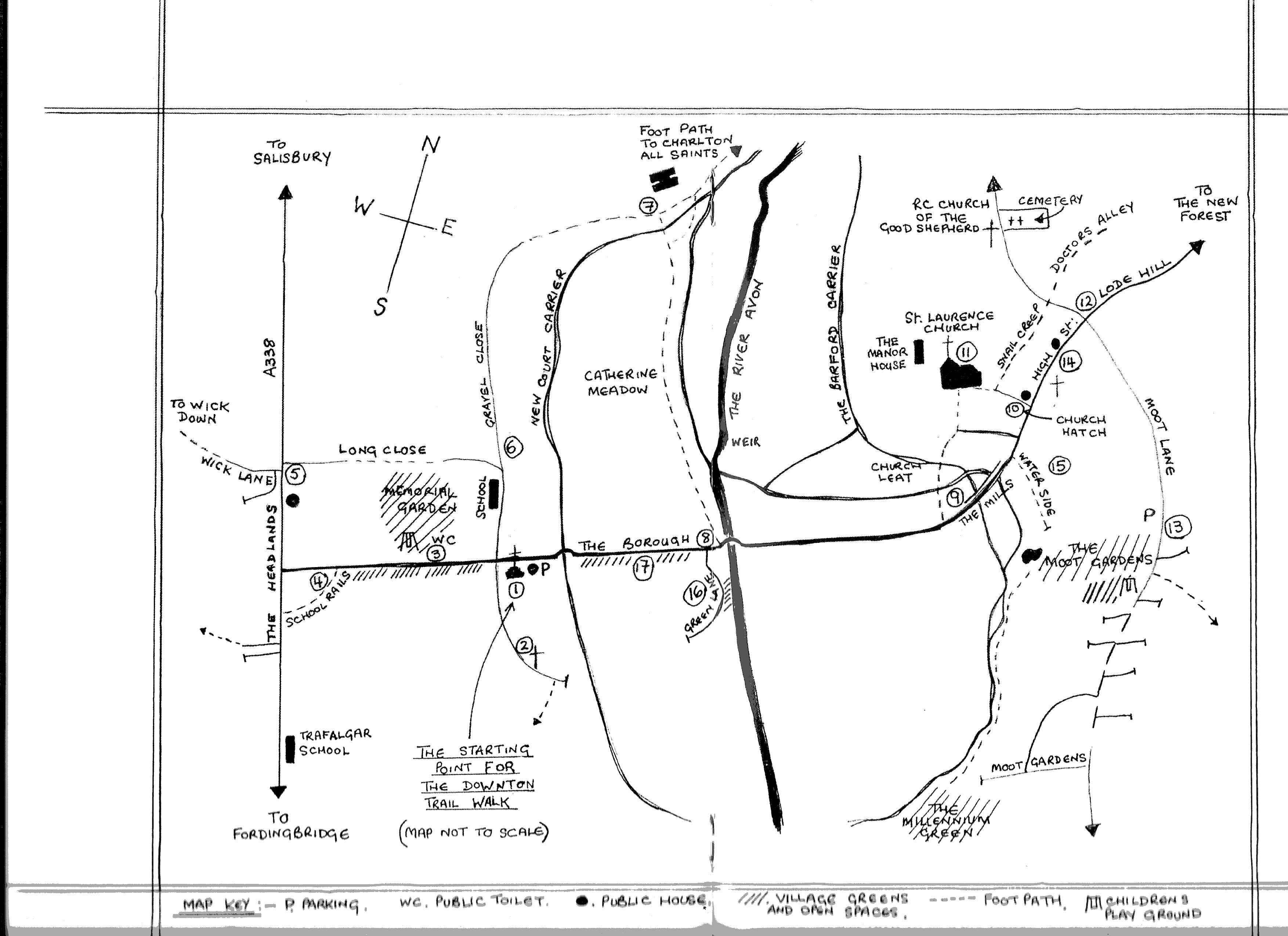 This is an on-line version of the Downton Heritage Trail booklet, originally published in 2009, which gives the visitor a brief introduction to most of Downton. At the points of interest shown on the map there are plaques and some notices giving a short description of the sites.