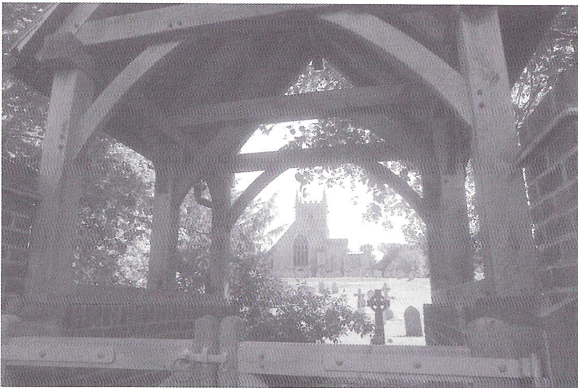 One of the wooden buildings that appear on your right is currently used as the Church Rooms (as an office and for meetings etc). Former uses of these buildings have included the village surgery and library.