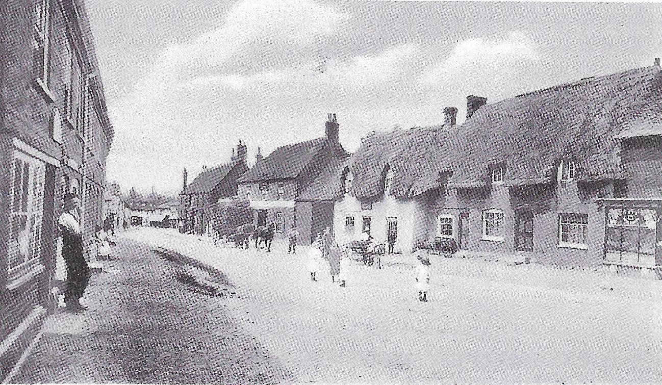 ‘The Bunny’ also paases under the Green here. ‘Bunny’ is a local name for a drainage ditch, deriving from ‘bunnell’, an old name for such a ditch. The ditch can still be seen next to the electricity sub-station on this side of the road and alongside the Memorial Hall opposite.